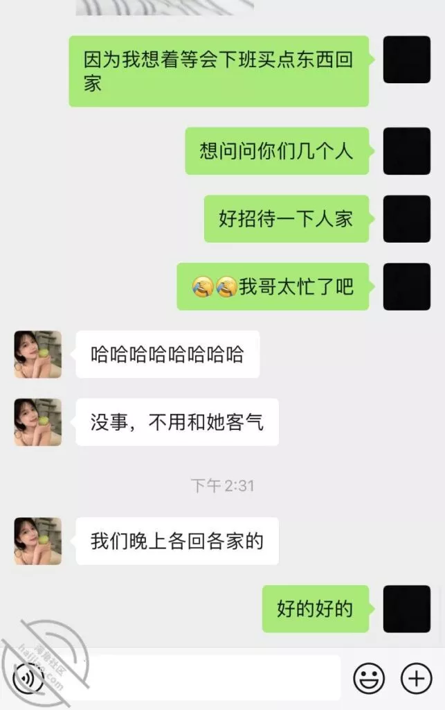 咱就是想偷拍都不知道从何下手,小嫂子要上班,我也要上班,回家后又是“各找各妈各回各房”的感觉,不过小嫂子今天倒是主动在聊天软件上叫我明天出去开小灶,当然是真真实实的开小灶吃饭,不是别的,是别的就更好了,我肯定不装君子了,今天回家也还是没看见小嫂子,因为她朋友过生日,就希望她不要喝太多酒吧, 酒这个东西喝起来就上头,想起来也是有点不放心,没啥图片放,放个简单的聊天记录和小嫂子的今日朋友圈吧,迷茫了迷茫了……
