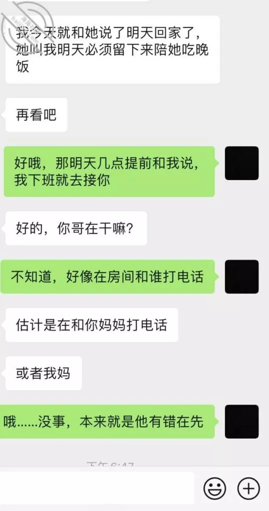 对了,写到这里,之前我打码的我哥发给我小嫂子的那个聊天记录里面, 我哥说因为我妈不同意我哥和他前女友在一起,他才相亲才和小嫂子结婚的,我不知道我哥这话是不是只是为了气小嫂子,但是可以想象,小嫂子当时应该挺难过的,记得当时他们两个结婚,我给小嫂子端洗脚水,小嫂子给我红包那会,她明明就像天下最幸福的女人,现在再想想他们这个家,想想小嫂子,真替小嫂子感到不值。