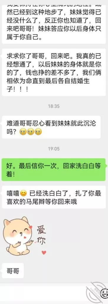 说到这我似乎又释怀了点,妹妹这还不是为了我们生活好点,好像又错怪妹妹了,但是文爱又是什么,年轻人的世界,这算是妹妹对我出轨吗!!!