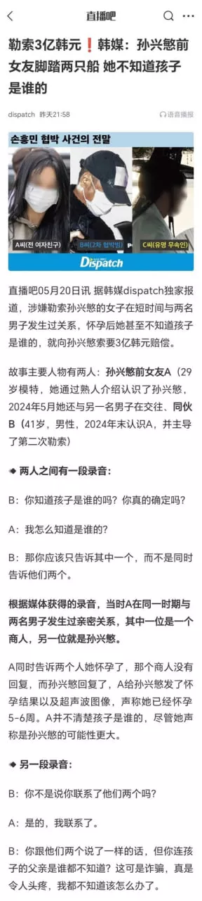 然而没多久之后,网络突然曝出更大内幕信息。首先孙兴慜确实与这位留学生美女发生过关系,且均出自于自愿。