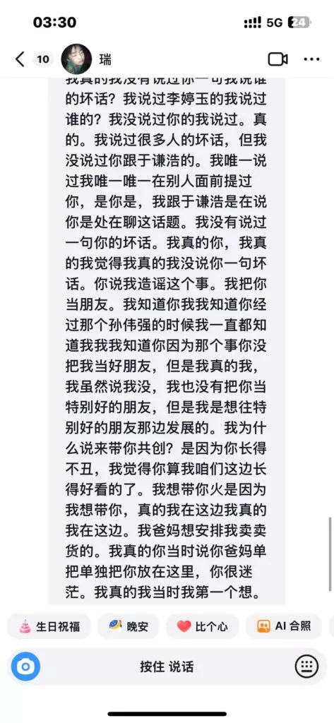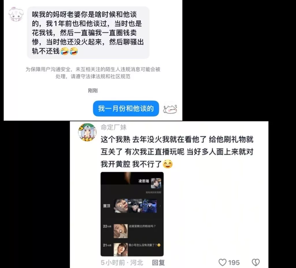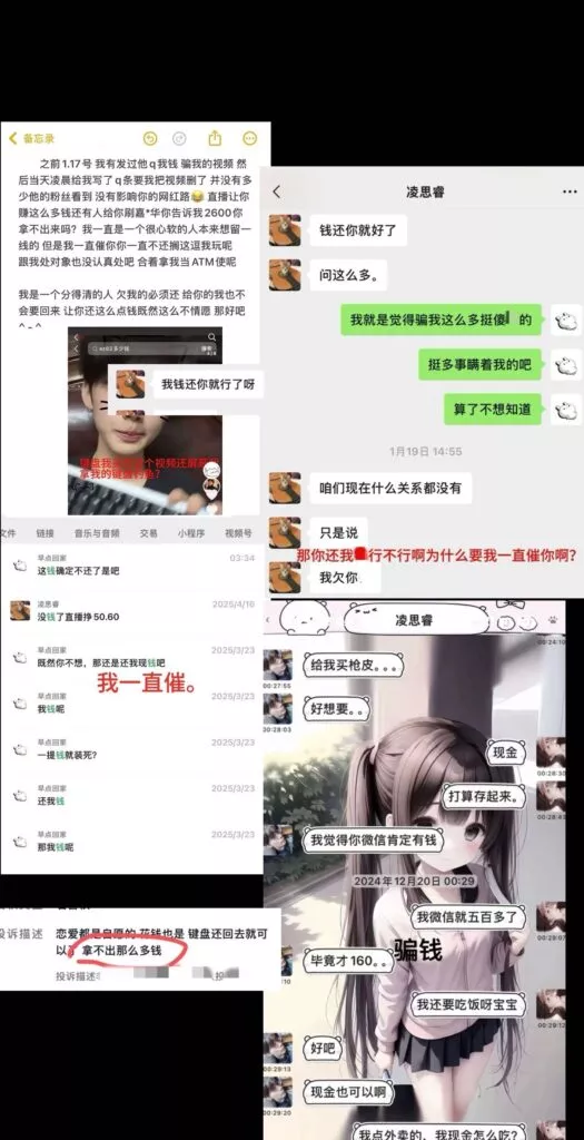 被坑骗的女粉提供的截图,几乎是当儿子来养了,做到这种程度,这位男网红竟然还到处撩搔