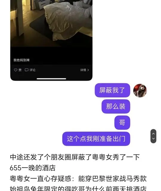 简要:与粤粤女掰扯半年确定了关系但出轨已知浙江1号和浙江2号以谈恋爱名义来广州与粤粤女发生关系后转头就和浙江2号去了上海约会得吃哥与粤粤女相识于2022年年末于2023年8月底开始常聊至2024年2月18日 在这之前只会偶尔联系加朋友圈互动