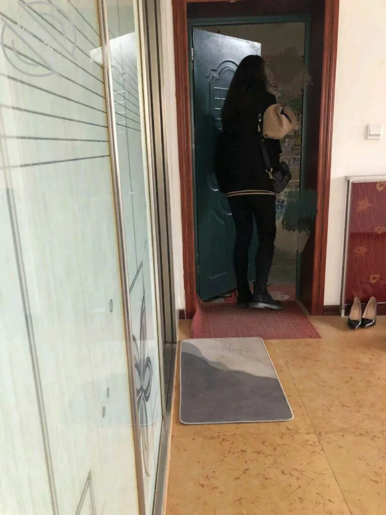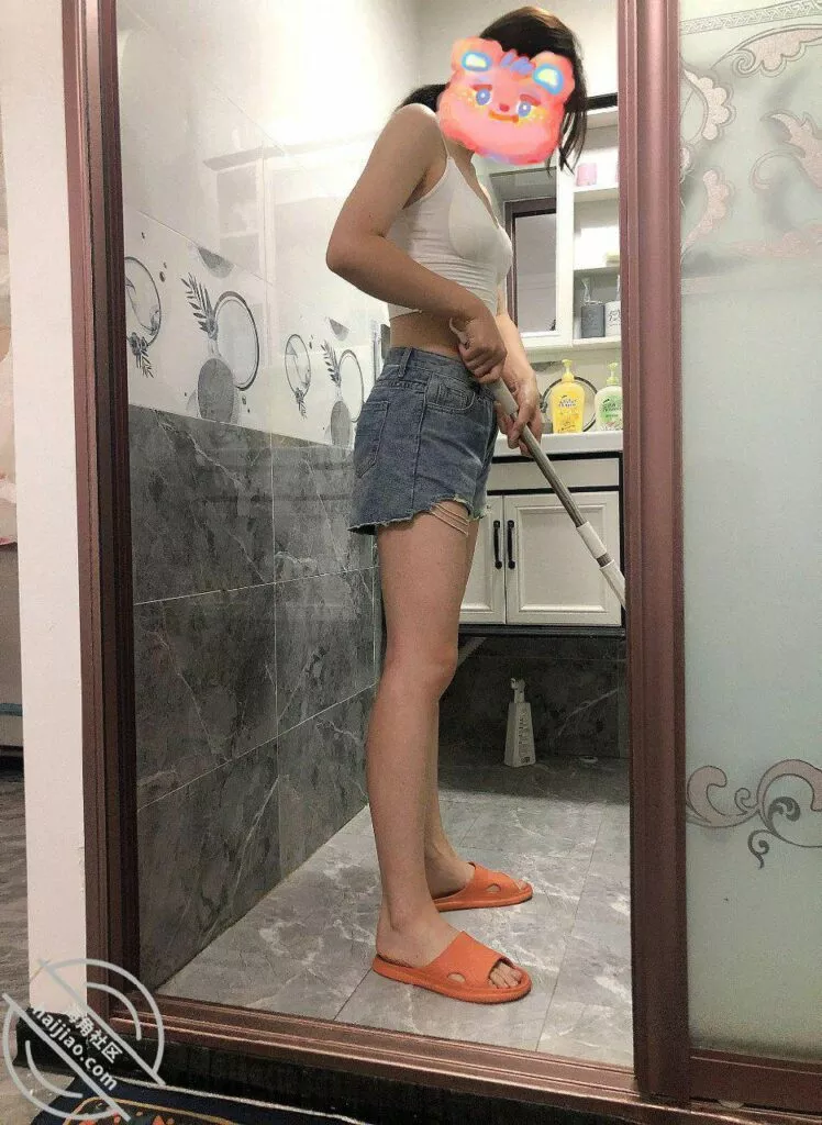 踩完点我正在苦思冥想怎样制造机会的时候,没想到机会就自己来了,姐姐竟然拿起拖把开始拖地了