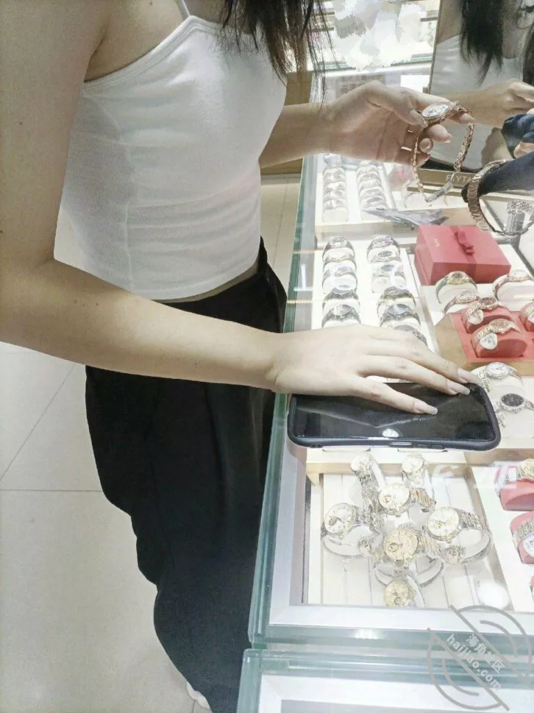我俩在服装区逛了半天,老姐就是光看不买,问就是没有相中的,我觉得陪女人逛街简直是男人的噩梦.我逛得都有点遭不住了,我想着这样下去不行啊,来都来了钱没花出去哪行啊(俗话说吃人嘴短,拿人手软,泡妞别怕花钱,钱是不会白花的,女人花了你的钱总是要付出点东西的,换句话说就是你花钱了,你就可以提要求,对方一般是不会拒绝的,当然了拜金女和女海王除外啊)我想着既然衣服买不成了那就买点其他东西吧,我一看老姐手上空空的,就带着老姐去手表专柜逛