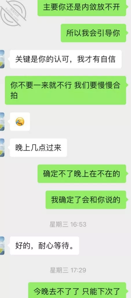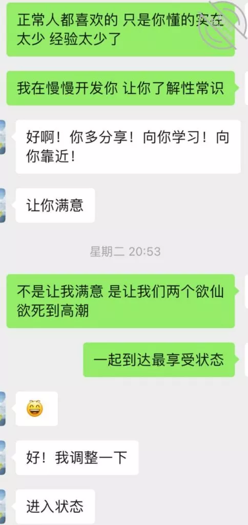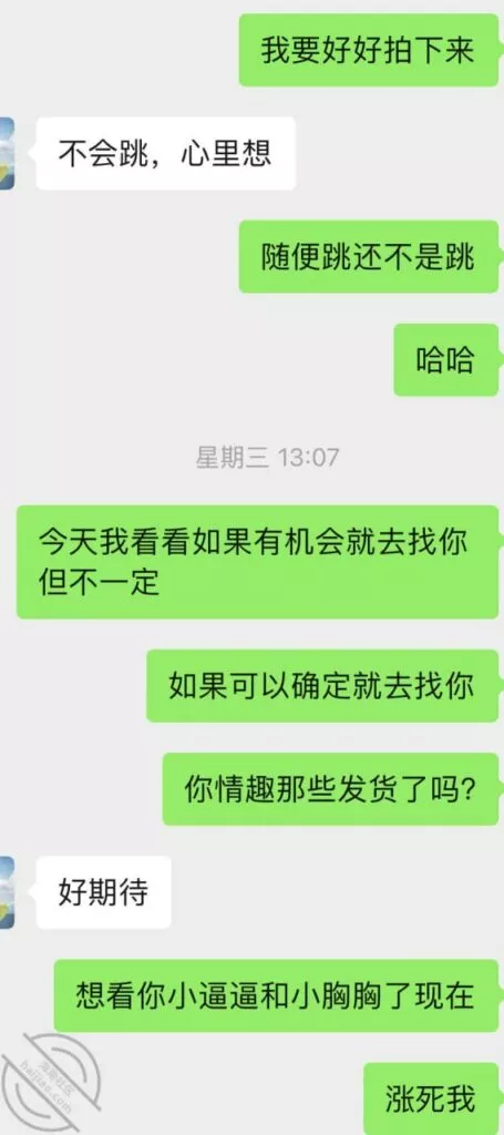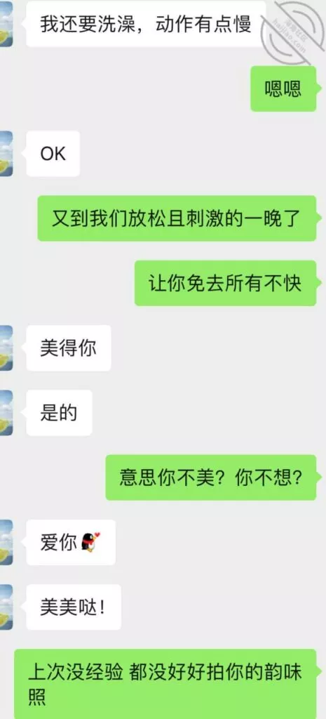 这次结束以后又重燃了她的激情,大概过了一周吧,就忍不住给我发消息,按她的说法估计是又被点燃少女的激情,开始变得主动想要了,我平时比较忙偶尔才有空去,所以每天有空就会微信撩一下她。