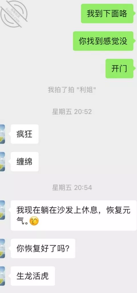 小弟文笔有限,写的较为啰嗦,但贵在真实,大家将就着看!同样,下面附上与利姐聊天记录的情趣照福利,有喜欢的再继续更!谢谢了!