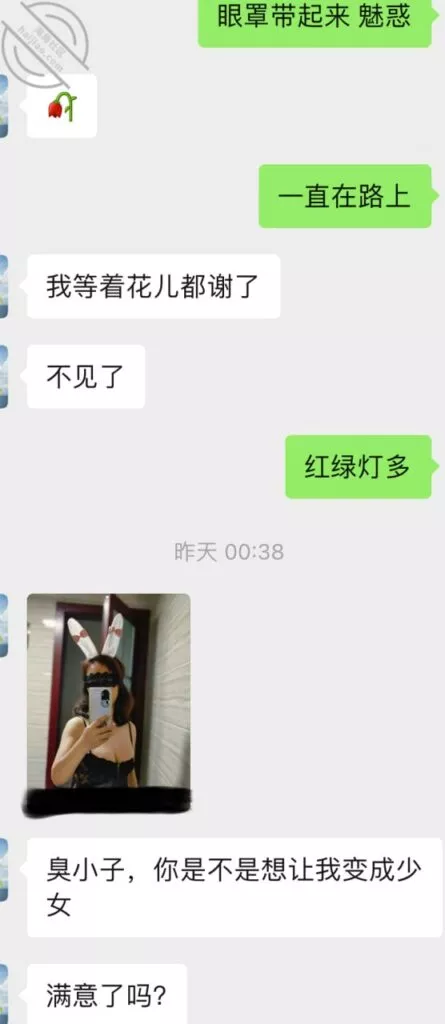 因为上一次撩搔完但我有事又忙,大概没撩搔了几天,第三次当日我给她发时候她半天没回,我还以为是不是她也忙导致情趣做i计划泡汤。谁知过了大概三个多小时回复我说身体抱恙,睡了一个中午,并且情趣刚好到货正准备一会去拿还专门为我贴心的买了拖鞋方便在她家使用,想想这利姐重聚才两次就对我这么上心,心里还是有点小激动。