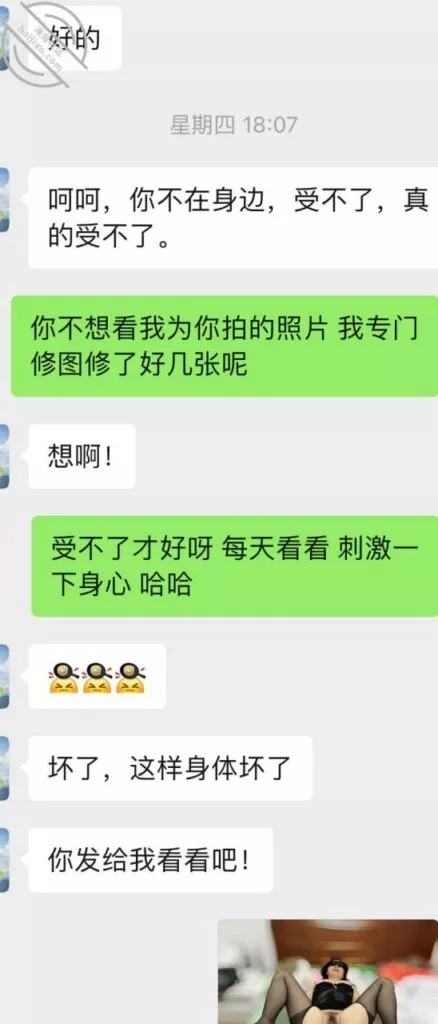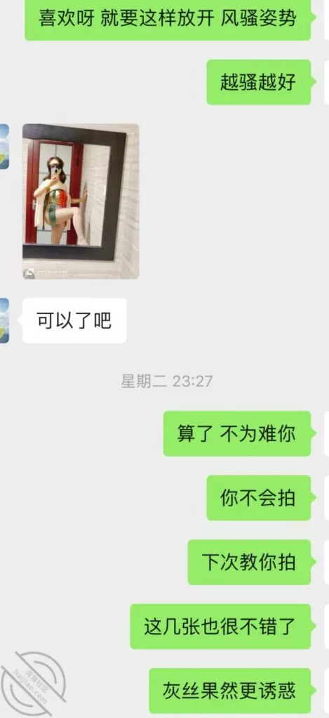 这一次她自己都体会到,拍给我的时候要越来越搔才能更诱惑我,所以这次自拍的比前几次自拍要好很多,的确是看着这老熟女利姐都不能自拔。多说无益,上聊天记录